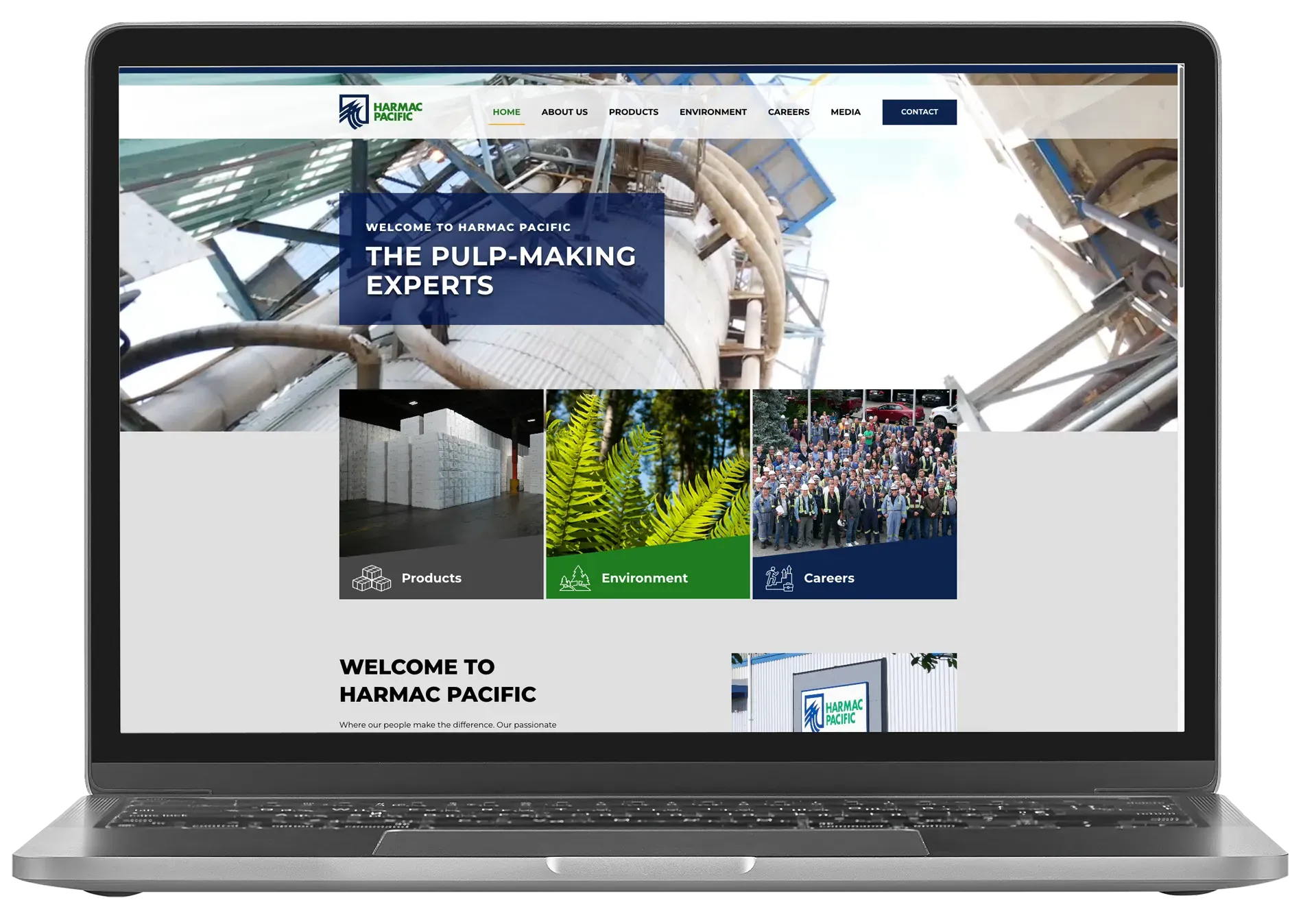 The site uses a clean, industrial visual style with a straightforward navigation structure that emphasizes clarity over complexity. Core pages focus on explaining what Harmac Pacific does, outlining services and capabilities, and providing direct contact pathways for business inquiries.