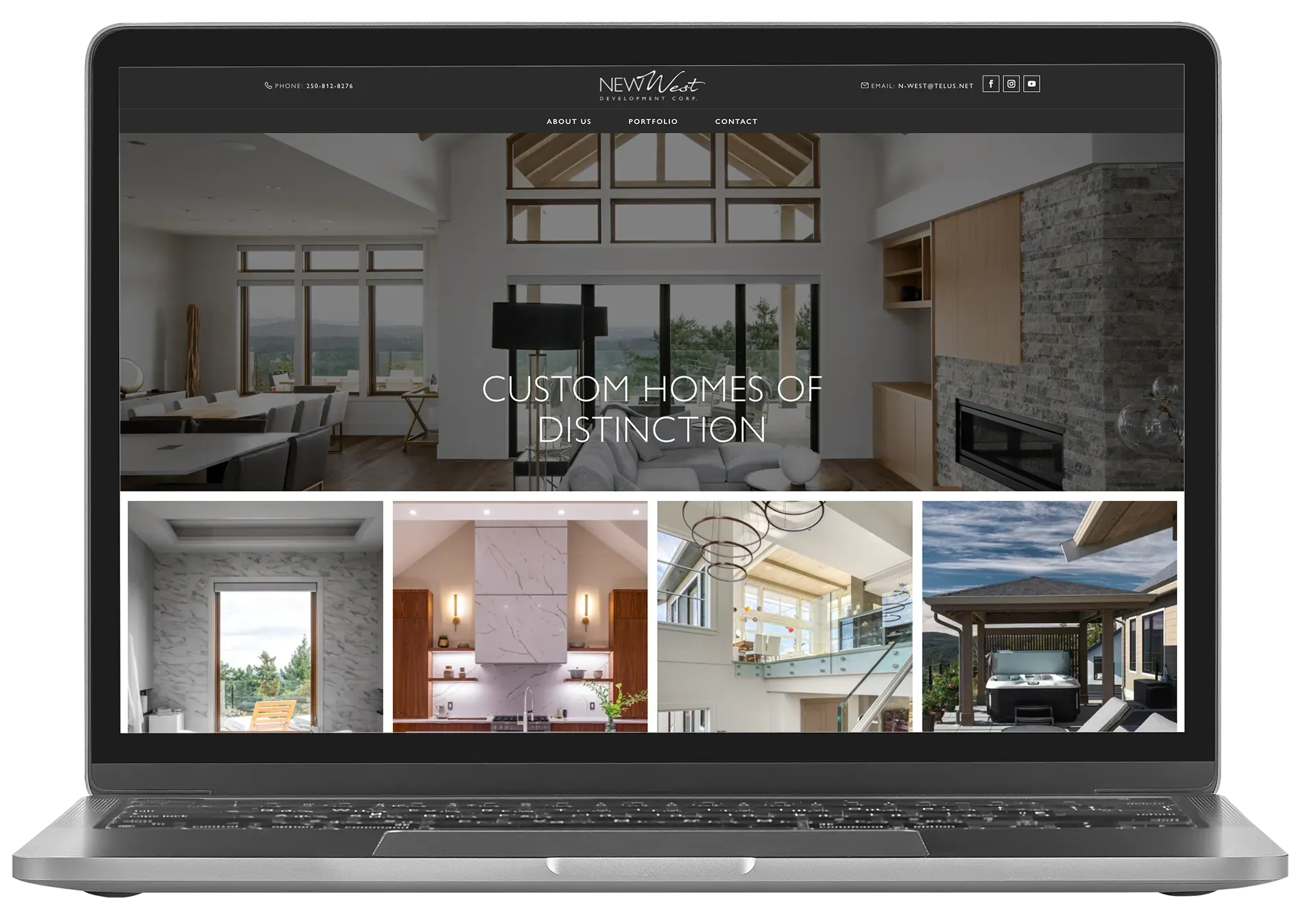 New West Development Corp. is a custom home builder focused on custom home builds, renovations, and project management in Victoria, British Columbia. The website is designed to present the company’s services and approach, provide a visual showcase of completed work, and make it straightforward for prospective clients to contact the business via listed phone and email details.