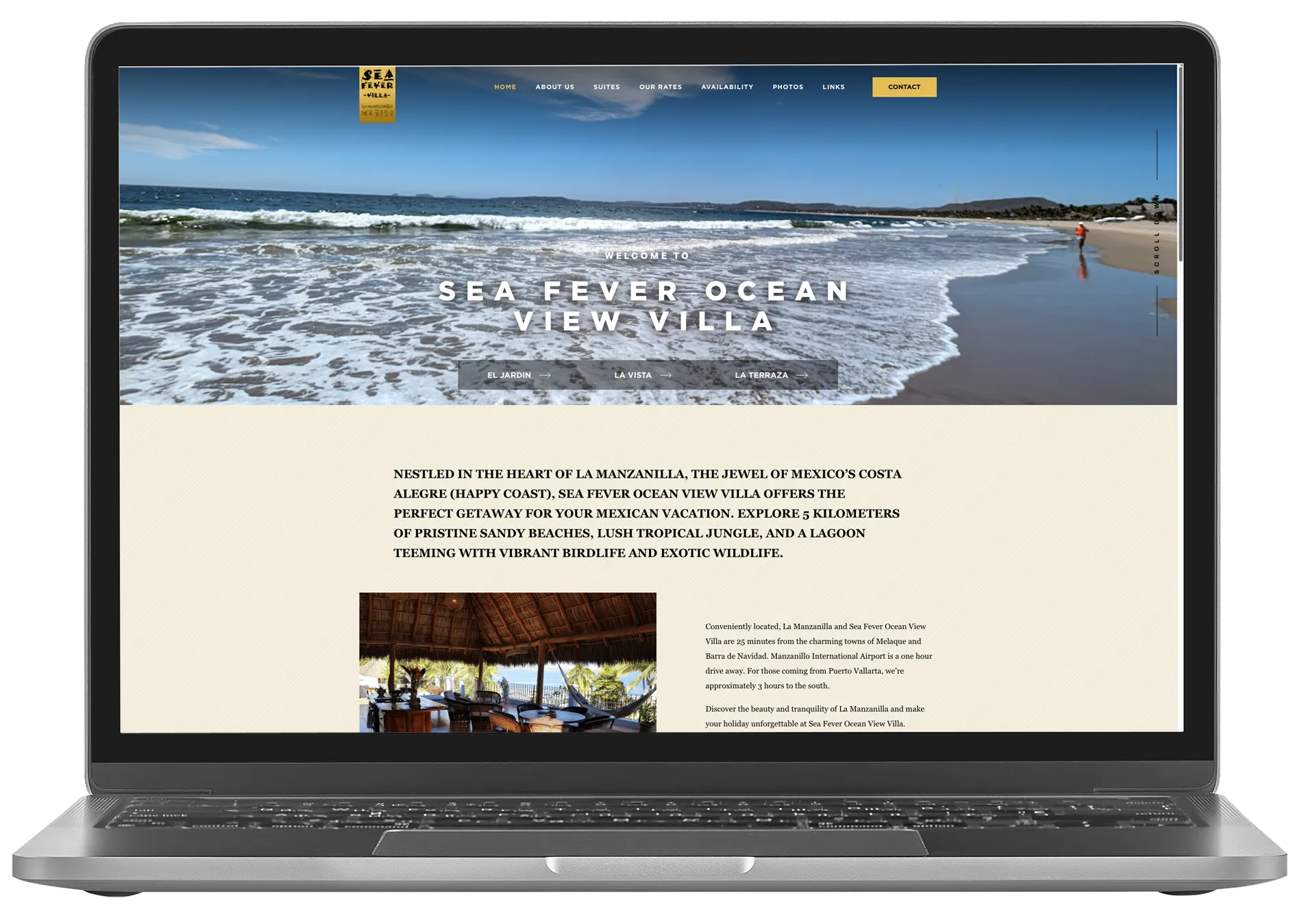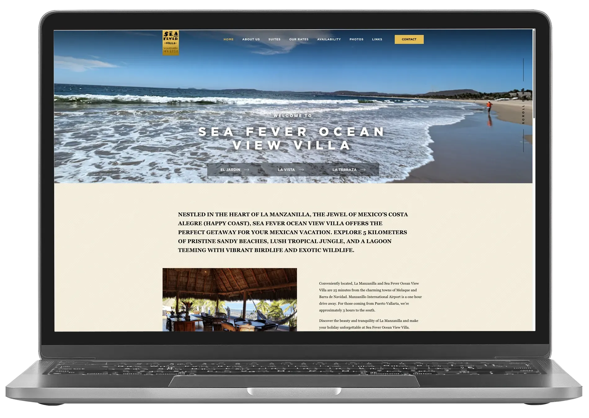 Sea Fever Ocean View Villa is a vacation rental property in La Manzanilla, Mexico, offering multiple suites (El Jardin, La Vista, and La Terraza). The website is intended to provide practical information for prospective guests, including suite details and photo galleries, seasonal rates, general location context, and clear contact options for checking availability and arranging reservations.